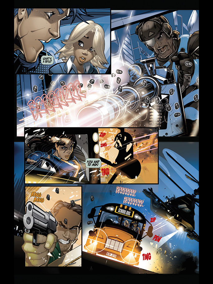 Overrun features the amazing art of Paul Green. Paul’s style captured the characters and locations of the universe, and he was a perfect match for the 'computer as a real world setting'. With 114 pages of story this good, we needed some top lettering to put the icing on the cake - step forward tag-team duo, Troy Peteri and Joshua Cozine, who brought a fresh look to our dialogue and some outstanding special effects to the production.